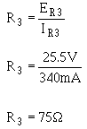 The value of the final divider resistor is calculated with IR3 (IR2 + I load 2) equal to 340 mA and E R3 (Es - E load 2) equal to 25.5V.