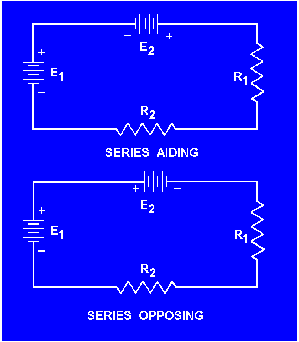 SERIES AIDING VOLTAGES cause current to flow in the same direction; thus the voltages are added.