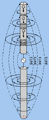 Combined Electric and Magnetic Fields The generator, shown in figure 1-30, provides the voltage, which creates an electric field, and current, which creates a magnetic field. This source voltage and current build up to maximum values in one direction during one half-cycle, and then build up to maximum values in the other direction during the next half-cycle. Both the electric and magnetic fields alternate from minimum through maximum values in synchronization with the changing voltage and current. The electric and magnetic fields reach their maximum intensity a quarter-cycle apart. These fields form the induction field. Since the current and voltage that produce these E and H fields are 90 degrees out of phase, the fields will also be 90 degrees out of phase. Figure 1-30. - Relationship of E-lines, and current flow.