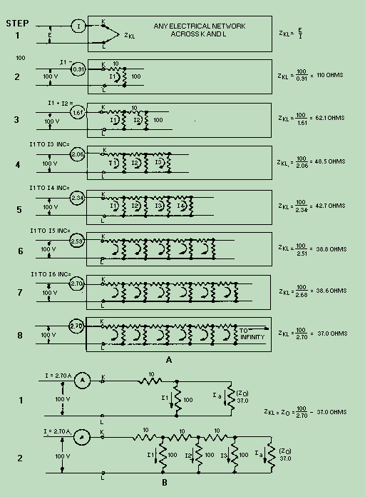 voltage is applied across points K and L. In fact, any circuit, such as that represented in figure 3-16, view A, has a certain current flow for each value of applied voltage. The ratio of the voltage to the current is the impedance (Z).">
