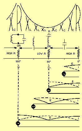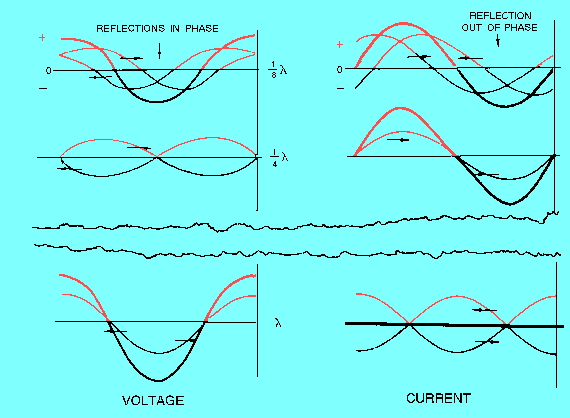 A NONRESONANT line has NO STANDING WAVES of current and voltage and is either infinitely long or terminated in its characteristic impedance. A RESONANT line has STANDING WAVES of current and voltage and is of finite length and is NOT terminated in its characteristic impedance. On an open-ended resonant line, and at all odd 1/4 l points, the voltage is minimum, the current is maximum, and the impedance is minimum. At all even 1/4 l points, the voltage is maximum, the current is minimum and the impedance is maximum.