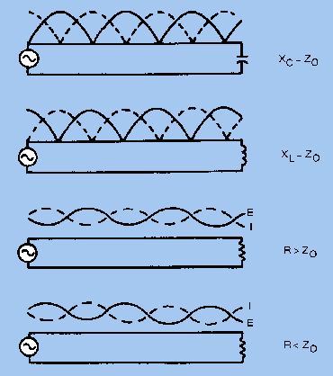 There are a variety of TERMINATIONS for rf lines. Each termination has an effect on the standing waves on the line.