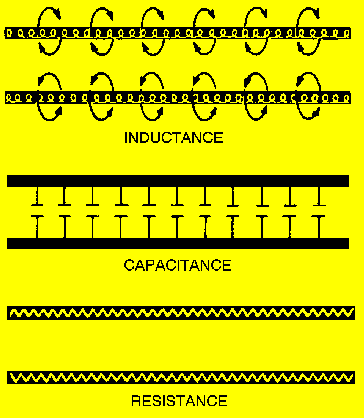 COPPER LOSSES can result from power (I2R) loss, in the form of heat, or skin effect. These losses decrease the conductivity of a line. DIELECTRIC LOSSES are caused by the heating of the dielectric material between conductors, taking power from the source. RADIATION AND INDUCTION LOSSES are caused by part of the electromagnetic fields of a conductor being dissipated into space or nearby objects. A transmission line is either electrically LONG or SHORT if its physical length is not equal to 1/4 l for the frequency it is to carry.LUMPED CONSTANTS are theoretical properties (inductance, resistance, and capacitance) of a transmission line that are lumped into a single component.