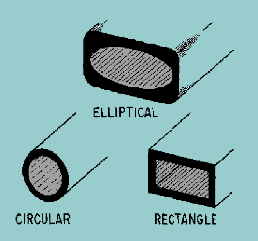 Waveguides are the most efficient way to transfer electromagnetic energy. WAVEGUIDES are essentially coaxial lines without center conductors. They are constructed from conductive material and may be rectangular, circular, or elliptical in shape, as shown in figure 1-3. Figure 1-3. - Waveguide shapes.