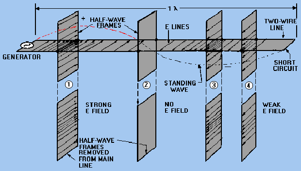 Figure 1-16B. - Magnetic fields on a two-wire line with half-wave frames.