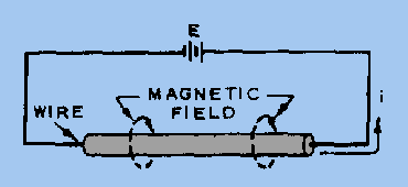 H FIELD. - The magnetic field in a waveguide is made up of magnetic lines of force that are caused by current flow through the conductive material of the waveguide. Magnetic lines of force, called H lines, are continuous closed loops, as shown in figure 1-14. All of the H lines associated with current are collectively called a magnetic field or H field. The strength of the H field, indicated by the number of H lines in a given area, varies directly with the amount of current. Figure 1-14. - Magnetic field on a single wire.
