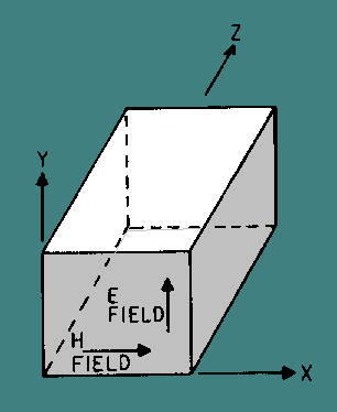 Cavity resonators are energized in basically the same manner as waveguides and have a similar field distribution. If the cavity shown in figure 1-61 were energized in the TE mode, the electromagnetic wave would reflect back and forth along the Z axis and form standing waves. These standing waves would form a field configuration within the cavity that would have to satisfy the same boundary conditions as those in a waveguide. Modes of operation in the cavity are described in terms of the fields that exist in the X, Y, and Z dimensions. Three subscripts are used; the first subscript indicates the number of 1/2 l along the X axis; the second subscript indicates the number of 1/2l along the Y axis; and the third subscript indicates the number of 1/2l along the Z axis.