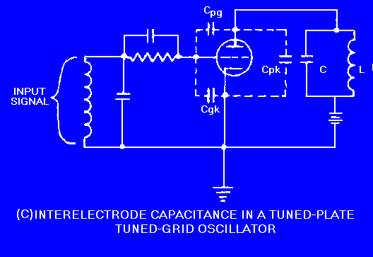 Figure 2-1C. - Interelectrode capacitance in a vacuum tube. INTERELECTRODE CAPACITANCE IN A TUNED-PLATE TUNED-GRID OSCILLATOR