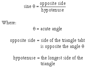 You should recall that the trigonometric ratio (inset in figure 1-3) for the sine in a right triangle (a triangle in which one angle is 90 degrees) is: