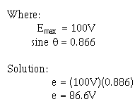 At position 2, the sine of 60 degrees is 0.866 and an output of 86.6 volts is developed.