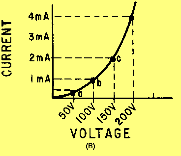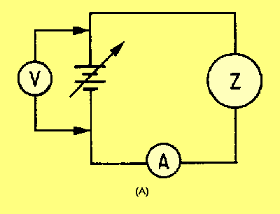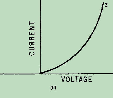 NONLINEAR IMPEDANCE You have studied that a linear impedance is one in which the resulting current is directly proportional to a change in the applied voltage. A nonlinear impedance is one in which the resulting current is not directly proportional to the change in the applied voltage. View (A) of figure 1-8 illustrates a circuit which contains a nonlinear impedance (Z), and view (B) shows its voltage-current curve. Figure 1-8A. - Nonlinear impedance circuit.