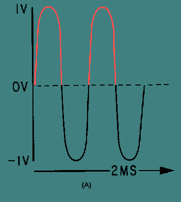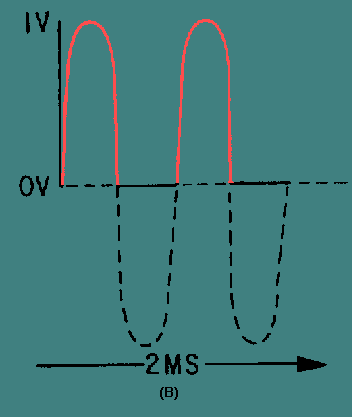 The waveform in view (B) is no longer identical to that of view (A) and the nonlinear impedance network has generated HARMONIC FREQUENCIES. The waveform now consists of the fundamental frequency and its harmonics. (Harmonics were discussed in NEETS, Module 9, Introduction to Wave-Generation and Wave-Shaping Circuits.) |