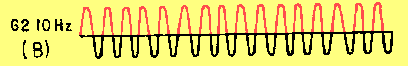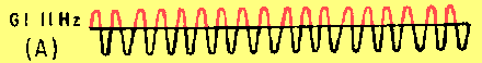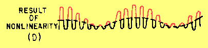 Figure 1-17 illustrates the relationship between the two frequencies (10 and 11 hertz). Since the waveforms are not of the same frequency, the 10 hertz of view (B) and the 11 hertz of view (A) will be in phase at some points and out of phase at other points. You can see this by closely observing the two waveforms at different instants of time. The result of the differences in phase of the two sine waves is shown in view (C). View (D) shows the waveform that results from the nonlinearity in the circuit. Figure 1-17A. - Frequency relationships.