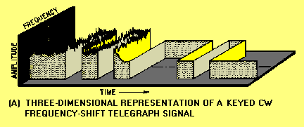 Figure 2-3A. - Comparison of AM and fm receiver response to an fm signal. THREE-DIMENSIONAL REPRESENTATION OF A FREQUENCY-SHIFT KEYED TELEGRAPH SIGNAL