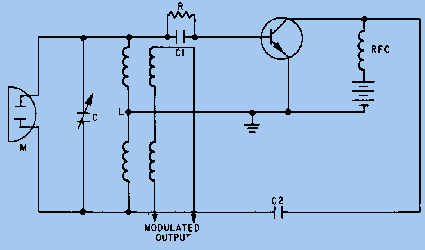 AMOUNT OF FREQUENCY SHIFT IS PROPORTIONAL TO THE AMPLITUDE OF THE MODULATING SIGNAL (This rule simply means that if a 10-volt signal causes a frequency shift of 20 kilohertz, then a 20-volt signal will cause a frequency shift of 40 kilohertz.) RATE OF FREQUENCY SHIFT IS PROPORTIONAL TO THE FREQUENCY OF THE MODULATING SIGNAL (This second rule means that if the carrier is modulated with a 1-kilohertz tone, then the carrier is changing frequency 1,000 times each second.) Figure 2-6 illustrates a simple oscillator circuit with the addition of a condenser microphone (M) in shunt with the oscillator tank circuit. Although the condenser microphone capacitance is actually very low, the capacitance of this microphone will be considered near that of the tuning capacitor (C). The frequency of oscillation in this circuit is, of course, determined by the LC product of all elements of the circuit; but, the product of the inductance (L) and the combined capacitance of C and M are the primary frequency components. When no sound waves strike M, the frequency is the rf carrier frequency. Any excitation of M will alter its capacitance and, therefore, the frequency of the oscillator circuit. Figure 2-7 illustrates what happens to the capacitance of the microphone during excitation. In view (A), the audio-frequency wave has three levels of intensity, shown as X, a whisper; Y, a normal voice; and Z, a loud voice. In view (B), the same conditions of intensity are repeated, but this time at a frequency twice that of view (A). Note in each case that the capacitance changes both positively and negatively; thus the frequency of oscillation alternates both above and below the resting frequency. The amount of change is determined by the change in capacitance of the microphone. The change is caused by the amplitude of the sound wave exciting the microphone. The rate at which the change in frequency occurs is determined by the rate at which the capacitance of the microphone changes. This rate of change is caused by the frequency of the sound wave. For example, suppose a 1,000-hertz tone of a certain loudness strikes the microphone. The frequency of the carrier will then shift by a certain amount, say plus and minus 40 kilohertz. The carrier will be shifted 1,000 times per second. Now assume that with its loudness unchanged, the frequency of the tone is changed to 4,000 hertz. The carrier frequency will still shift plus and minus 40 kilohertz; but now it will shift at a rate of 4,000 times per second. Likewise, assume that at the same loudness, the tone is reduced to 200 hertz. The carrier will continue to shift plus and minus 40 kilohertz, but now at a rate of 200 times per second. If the loudness of any of these modulating tones is reduced by one-half, the frequency of the carrier will be shifted plus and minus 20 kilohertz. The carrier will then shift at the same rate as before. This fulfills all requirements for frequency modulation. Both the frequency and the amplitude of the modulating signal are translated into variations in the frequency of the rf carrier. Figure 2-6. - Oscillator circuit illustrating frequency modulation.
