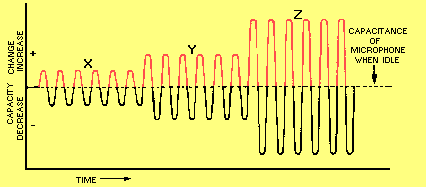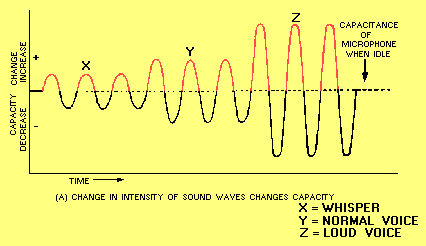Figure 2-7A. - Capacitance change in an oscillator circuit during modulation. CHANGE IN INTENSITY OF SOUND WAVES CHANGES CAPACITY