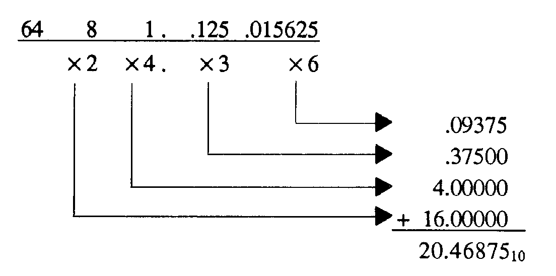 Next, multiply the decimal equivalent by the corresponding digit of the octal number; then, add this column of figures for the final solution: