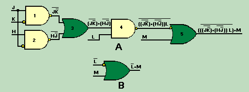 BOOLEAN ALGEBRA Boolean logic, or Boolean algebra as it is called today, was developed by an English mathematician, George Boole, in the 19th century. He based his concepts on the assumption that most quantities have two possible conditions - TRUE and FALSE. This is the same theory you were introduced to at the beginning of this chapter. Throughout our discussions of fundamental logic gates, we have mentioned Boolean expressions. A Boolean expression is nothing more than a description of the input conditions necessary to get the desired output. These expressions are based on Boole's laws and theorems. PURPOSE Boolean algebra is used primarily by design engineers. Using this system, they are able to arrange logic gates to accomplish desired tasks. Boolean algebra also enables the engineers to achieve the desired output by using the fewest number of logic gates. Since space, weight, and cost are important factors in the design of equipment, you would usually want to use as few parts as possible. Figure 2-26 (view A), shows a rather complex series of gates. Through proper application of Boolean algebra, the circuit can be simplified to the single OR gate shown in view B. Figure 2-27 shows the simplification process and the Boolean laws and theorm used to accomplish it. Figure 2-26. - Logic simplification: A. Complex series of gates; B. Simplified single OR gate