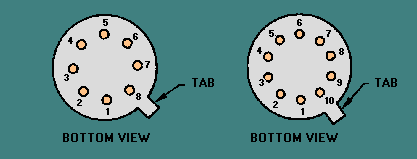 The TO-5 can has a tab for the reference mark. When numbering the leads, you must view the TO-5 can from the bottom. Pin 1 will be the first pin in a clockwise direction from the tab. All other pins will be numbered consecutively in a clockwise direction from pin 1, as shown in figure 1-31. Figure 1-31. - Lead numbering for a TO-5.