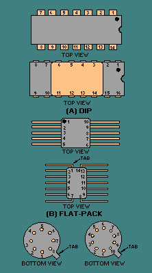 Large DIPs are being used to package lsi and vlsi. They can be produced with up to 64 pins and are designed to fulfill a specific need. Viewed from the tops, DIPS and FLAT-PACK LEADS are numbered counterclockwise from the reference mark. Viewed from the bottom, TO-5 LEADS are numbered clockwise from the tab.