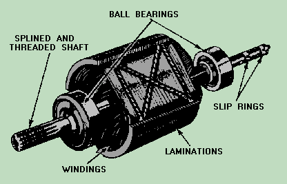 Now, refer to figure 1-4 for a view of a completed synchro assembly. The rotor has been placed in the stator assembly, and a terminal board has been added to provide a point at which internal and external connections can be made. Q.9 What are the two major components of a synchro? |