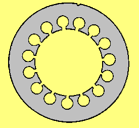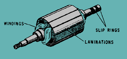 This type of winding is frequently used in both transmitters and receivers. The drum or wound rotor has coils wound in slots in a laminated core as shown in figure 1-6. This type of rotor is used in most synchro control transformers and differential units, and occasionally in torque transmitters. It may be wound continuously with a single length of wire or may have a group of coils connected in series. The single continuous winding provides a distributed winding effect for use in transmitters. When the rotor is wound with a group of coils connected in series, a concentrated winding effect is provided for use in control transformers. When used in differential units, the rotor is wound with three coils so their magnetic axes are 120 apart. Figure 1-6. - Drum or wound rotor.