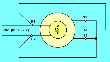 ELECTRICAL LOCK METHOD The electrical lock method, although not as accurate as the voltmeter method, is perhaps tile fastest method of zeroing synchros. However, this method can be used only if the rotors of the units to be zeroed are free to turn and the lead connections are accessible. For this reason, this method is usually used on the TR because, unlike transmitters, the TR shaft is free to turn. To zero a synchro by the electrical lock method, deenergize the unit, connect the leads as shown in figure 1-41, and apply power. The synchro rotor will then quickly snap to the electrical zero position and lock. If the indicating device connected to the synchro shaft does not point to zero, loosen the synchro in its mounting and rotate it until the zero position of the indicator corresponds with the electrical zero of the synchro. As we stated previously, you may use 115 volts as the power source instead of 78 volts, provided you do not leave the unit connected for more than 2 minutes. Figure 1-41. - Zeroing a synchro by the electrical lock method.