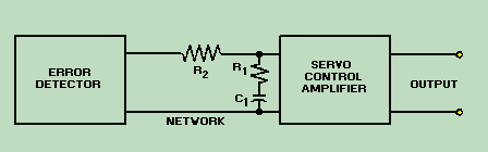 The network consists of a capacitor and two resistors connected in series with the servo amplifier. The components of this circuit are designed to work with a constant or very slowly changing error signal. Initially, all of the error voltage is divided between R1 and R2. But the longer the error voltage is applied, the more C1 charges, and the greater the voltage at the input of the amplifier. Because of the RC time of the circuit, it takes time for the capacitor to charge to the value of the error input signal. Because of the long charge time of C1, the circuit can not respond instantaneously to a rapid change in error signal. What this means is that all error signals will be integrated (or smoothed out). The load will not respond as quickly. The inertia of the load will be reduced, and the system will be damped. The capacitor, by not responding instantaneously to the error signal, causes the damping action. This action is used to stabilize the servo system at the new velocity. By tailoring the stabilization network (through the proper selection of the RC components) to the system's performance requirements and the type of load to be driven, undesirable load or performance characteristics can be minimized. The various compensating networks that you will encounter will depend on the design of the individual servo system and will be covered in the associated system's technical manual. In summary, the key to understanding compensating networks is to realize that components are chosen so the capacitor does not have time to charge and discharge in response to large, rapid fluctuations. Q.15 Error-rate damping is effective because the circuitry has the capability of