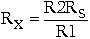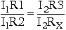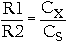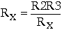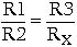 With this information, we can figure the value of the unknown resistor Rx. Divide the voltage drops across R1 and R3 by their respective voltage drops across R2 and Rx as follows: