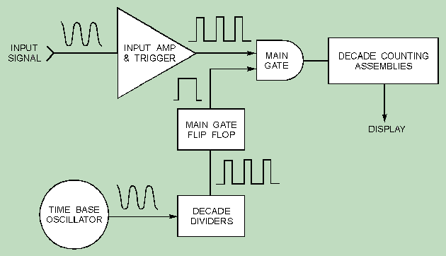 The heart of the counter is the MAIN GATE. When the gate is opened, pulses from the