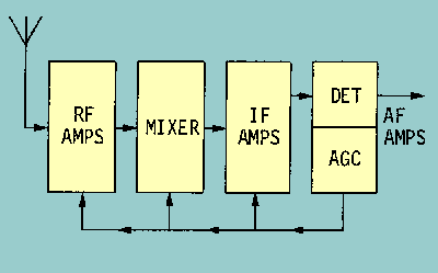 Automatic Gain/Volume Control (agc/avc) Output volume variations of a receiver often result from variations in the input signal strength. Changes in input signal strength occur when we change stations or when we experience fading because of changing atmospheric conditions. The function of an AUTOMATIC GAIN CONTROL, also referred to as an AUTOMATIC VOLUME CONTROL, is to limit unwanted variations in the output of the receiver caused by variations in strength of the received signal input. A receiver without agc would require continuous manual readjustment to compensate for received signal changes so that it could maintain a constant output level. Signals from stations operating at the same power level may not reach the receiver antenna with the same power. This is because of differences in transmission distances, carrier frequencies, atmospheric conditions, and obstructions between the transmitter and receiver antennas. You might draw the conclusion that an agc network is not necessary when the receiver is operating on a single station. However, this is not true; atmospheric conditions may cause the signal strength to vary (fade in and out), or the antenna may receive components of the signal which have traveled along different paths. For example, one component may travel directly from the antenna, and another may have been reflected from a distant object. The two signals will sometimes be in phase and at other times be out of phase, thus tending to reinforce or cancel each other. The result is a variation in signal strength at the receiver antenna. This variation in signal strength is often referred to as FADING. The effect of fading in the output signal voltage of an rf stage is best demonstrated by the following example: An rf amplifier connected to a receiving antenna has a voltage gain of 100. If the antenna receives an input signal of 10 microvolts, the output voltage is computed as follows: