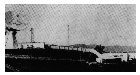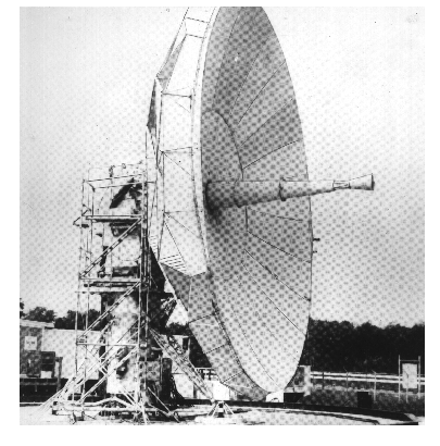 EARTH TERMINAL CHARACTERISTICS Communications satellite earth terminals are usually located in areas remote from the actual users of these communications. This is necessary to minimize rf interference to the satellite. Locating the terminals in these remote locations requires interconnecting communications links. Links permit communications flow to and from the users of the satellite systems. Interconnect links are usually connected via telephone cables or microwave radio links with normal terminal equipment. Earth satellite communications terminals generally have a single, large antenna; a highly sensitive receiver; a powerful transmitter; multiplex equipment; modulating-demodulating equipment; and telemetry equipment. Each of these elements will be discussed later in this chapter. Earth terminal antennas are highly directional, high-gain antennas capable of transmitting and receiving signals simultaneously. Generally, large, high-gain, parabolic antennas are used. Generally speaking, three sizes of parabolic-type antennas are currently in use at earth terminal sites. These are a parabolic antenna sixty feet in diameter, a parabolic antenna forty feet in diameter, and a cluster of four parabolic antennas, each ten feet in diameter. These four in combination are equal to a parabolic antenna eighteen feet in diameter. They are shown in figures 4-10, 4-11,and 4-12, respectively. Figure 4-10. - Typical satellite earth terminal with sixty-foot antenna.