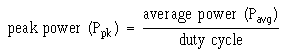 The SPECTRUM ANALYZER and the ECHO BOX are two instruments used to check transmitter performance. One of the more important measurements that can be performed with the echo box is RING TIME. Ring time gives a relative indication of both transmitter output power and receiver sensitivity. Transmitter OUTPUT POWER MEASUREMENTS are a good indication of overall transmitter operation. POWER MEASUREMENTS are usually of average power read in dBm. The average power dBm reading must be converted to watts and the peak power calculated. The formula for peak power is: