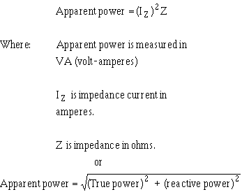 voltage source "sees." Apparent power is the combination of true power and reactive power. Apparent power is not found by simply adding true power and reactive power just as impedance is not found by adding resistance and reactance. ">