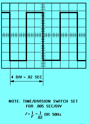Various frequency counters have found application as an ELECTRONIC TACHOMETER to obtain accurate measurements of high-speed rotating machinery. A tachometer pickup may be used to produce signals that are fed directly to the frequency counter. If the tachometer pickup is designed to generate 1 signal per revolution, the counter will indicate directly in revolutions per second; if the pickup is designed to produce 60 signals per revolution, the counter will indicate directly in revolutions per minute. AUDIO-FREQUENCY MEASUREMENTS Audio-frequencies can be measured with a variety of nonelectronic and electronic devices. Examples of nonelectronic measuring devices are the vibrating-reed meter and the moving-disk frequency meter. (Both of these devices were discussed in NEETS, module 3.) They are used primarily to measure the frequency of ac power, 60 Hz. However, such instruments do not have a wide frequency range. The most common instruments available for the measurement of audio frequencies are oscilloscopes and frequency counters. OSCILLOSCOPE METHOD The frequency of a waveform can readily be determined by using an oscilloscope. The most common oscilloscope method of measuring a frequency is accomplished by first measuring the time duration of the waveform. Frequency is the reciprocal of time