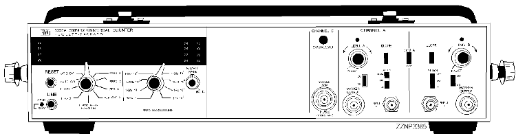 Another common method of determining the frequency of a waveform is by using Lissajous patterns. This method was discussed in NEETS, module 19. While oscilloscopes can be used to compare rectangular waveforms for the purpose of measuring the frequency of a signal, frequency counters, as shown in figure 3-25, are much more useful for this purpose. The fundamental measurement of frequency is accomplished by totaling the number of cycles into the counter for a precise period of time. The result is then displayed as an exact digital readout. The audio-frequency signal must be of sufficient amplitude to trigger the counter. The AUTO-MANUAL switch provides two methods of frequency counter operation. One method is to initiate the count simultaneously with the initiation of the signal to be measured. With this method, the AUTO-MANUAL switch should be set to the MANUAL position. The second method assumes that the signal to be measured has been operating over some indefinite period of time and that it will continue to do so after a measurement has been taken (hence, only that segment of the signal required to make the frequency measurement is important). With this method, the AUTO-MANUAL switch is to be set to the AUTO position. Figure 3-25. - Frequency counter.