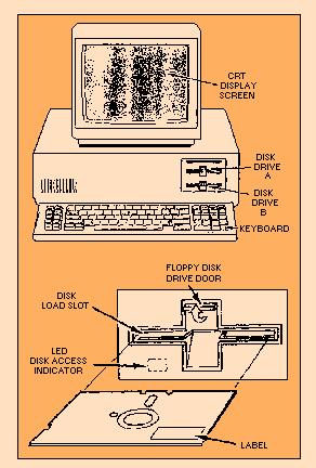 FLOPPY DISK DRIVE UNITS (INPUT/OUTPUT) Floppy disk drive units are physically smaller than magnetic disk drive units and are typically used with personal (desktop) computers (fig. 2-22). The unit consists of a disk drive in which the disk rotates and a controller containing the electronic circuitry that feeds signals onto and from the disk. The disk (diskette) is a thin, flexible platter (floppy disk) coated with magnetic material so characters can be recorded on the surface in the form of magnetized spots. Floppy disks come in several sizes from 3 to 8 inches in diameter. The most common are the 8-inch disk, the 5 1/4-inch disk, and the 3 1/2-inch disk. Figure 2-22. - Floppy disk drive unit.