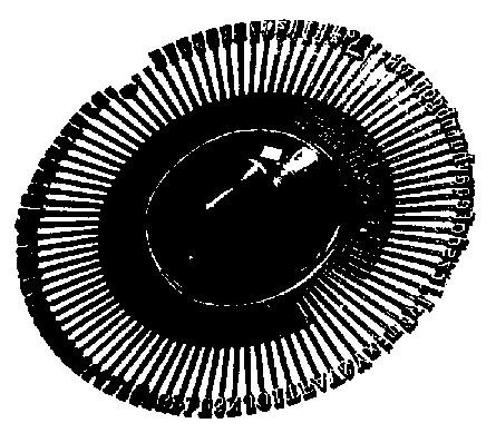 Daisy-Wheel Printers Daisy-wheel printers have the most professional-looking, pleasing-to-the-eye print of all the printers in the character-at-a-time impact printer class. Daisy-wheel printers are often used in an office or word processing environment, where crisp, sharp, high-quality (letter quality) characters are a must. The daisy-wheel printer uses a round disk, with embossed characters located at the end of each petal-like projection (one character per petal), similar to the petals of a daisy, as shown in figure 2-24. A drive motor spins the wheel at a high rate of speed. When the desired character spins to the correct position, the print hammer strikes that character causing it to be printed on the paper. Once printed, the daisy wheel continues to move, searching out the next character to be printed, until the line is completed. The speeds of daisy-wheel printers range from 30 to 60 characters per second (cps). Figure 2-24. - A daisy-wheel print wheel.