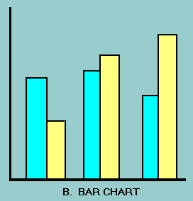 You can also specify the information to be used in report and column headings. While the data management programs on micros are not as sophisticated as the data base management systems on mainframes and minis, they do provide an extremely useful capability in offices or aboard ship. SPREADSHEETS Spreadsheets are tables of rows and columns of numbers. Figure 3-10 shows an example. Spreadsheet processors allow you to set up a table of rows and columns and specify what calculations to perform on the columns. You enter values for the basic information into the appropriate rows and columns. Then the processor performs the calculations. In our example (fig. 3-10), we used a spreadsheet to project magnetic media costs. You enter the item descriptions, column headings, report title, and data for columns 1, 2, and 4, and the software calculates column 3 by adding columns 1 and 2. Then it multiplies column 3 times column 4 and puts the result in column 5. It also subtotals and totals the columns you specify; in this case, columns 1 through 3 and column 5. Figure 3-10. - Spreadsheet example. GRAPHICS Graphics capability is available on many microcomputers. One use is to produce datadisplays, like bar charts, pie charts, and graphs. See figure 3-11, view A and view B. Onsome micros, you can do line drawings; on others you can create sophisticated engineeringdrawings. High resolution color graphics are also available for specialized applications. Figure 3-11A. - Graphics examples. PIE CHART