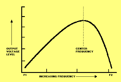 The magnetic record head transforms the electrical signal into a magnetic field for recording onto magnetic tape. If the bias signal level is set to high, you might erase the higher frequencies. If it's too low, you'll get excessive tape distortion. The reproduce head transforms the magnetic field from the magnetic tape back into an electrical signal. As explained in chapters 3 and 5, the head gap of a recorder's reproduce head and the operating speed of the magnetic tape transport determine the wavelength of the reproduce head. The wavelength determines the center frequency of a recorder's frequency-response specification. Once you pass this center frequency, both below and above, the output voltage level of the recorder's reproduce head will decrease. Figure 6-2 shows this. This is why the equalization circuits described in chapter 5, figure 5-3,are used. Figure 6-2. - Frequency response of a reproduce head.