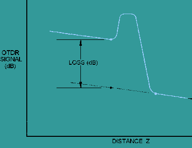 OTDRs can also measure the return loss of a point defect. However, not all OTDRs are configured to make the measurement. To measure the return loss of a point defect, the cursors are placed in the same places as for measuring the loss of the point defect. The return loss of the point defect is displayed when the return loss option is selected on the OTDR. The steps for selecting the return loss option depend upon the OTDR being used.