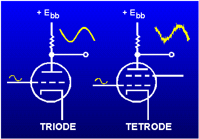 TETRODES were developed to compensate for the effects of interelectrode capacitance. Placing a positively charged screen grid between the control grid and plate has the effect of adding a capacitor in series with the capacitance that exists between the control grid and plate. This reduces total capacitance below the value of either capacitor as shown by applying the formula: