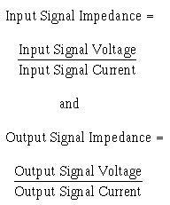 NOTE: Only approximate impedance values are shown. This is because the exact impedance values will vary from circuit to circuit. The impedance of any particular circuit depends upon the device (transistor) and the other circuit components. The value of impedance can be computed by dividing the signal voltage by the signal current. Therefore: