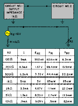 MAXIMUM POWER TRANSFER occurs between two circuits when the output impedance of the first circuit matches the input impedance of the second circuit. A MAXIMUM VOLTAGE INPUT SIGNAL is present when the input impedance of the second circuit is larger than the output impedance of the first circuit (mismatched).