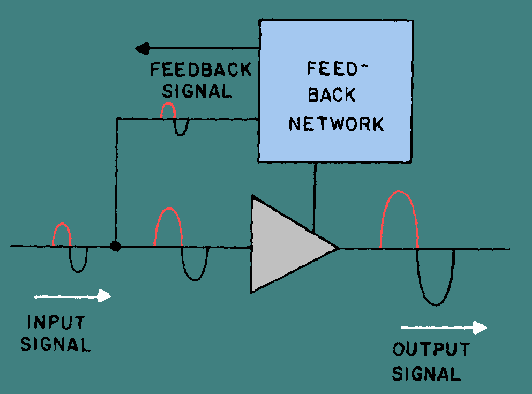 NEGATIVE (DEGENERATIVE) FEEDBACK is provided when the feedback signal is 180 out of phase with the input signal. Negative feedback decreases the gain of an amplifier but improves fidelity and may increase the Frequency response of the amplifier.
