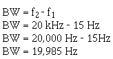 On figure 2-1, the two points marked f1 and f2 will enable you to determine the frequency-response limits of the amplifier. In this case, the limits are 15 hertz (15 Hz) and 20 kilohertz (20 kHz). You should now see how a frequency-response curve can enable you to determine the frequency limits and the bandwidth of an amplifier. |