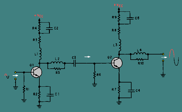 amplifier can be extended to 6 megahertz (6 MHz), you should realize that it is only necessary to extend the low-Frequency response to 10 hertz (10 Hz) in order to have a video amplifier. Once again, the culprit in low-Frequency response is capacitance (or capacitive reactance). But this time the problem is the coupling capacitor between the stages. ">