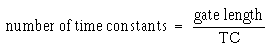 An increase in gate length results in an increase in the number of time constants and an increase in the percentage of charge that the capacitor will take on during this time interval. As stated earlier, if the number of time constants were to exceed 0.1, linearity would decrease. The reason for a decrease in linearity is that a greater percentage of VCC is used. The Universal Time Constant Chart (figure 3-39) shows that the charge line begins to curve. A decrease in gate length has the opposite effect on linearity in that it causes linearity to increase. The reason for this increase is that a smaller number of time constants are used and, in turn, a smaller percentage of the applied VCC is used. Changing the value of resistance or capacitance in the circuit also affects linearity. If the value of C2 or R3 is increased, the time is increased for 1 time constant. An increase in the time for 1TC results in a decrease in the number of time constants required for good linearity. As stated earlier, a decrease in the number of time constants results in an increase in linearity (less than 0.1TC). In addition to an increase in jump voltage (larger value of R3) and a decrease in the amplitude (physical length) of the sawtooth produced by the circuit, electrical length remains the same because the length of the gate was not changed. R2 has a similar effect on linearity because it is in series with R3. As an example, decreasing the value of R2 results in a decrease in linearity. The equation illustrates that by decreasing R (TC = RC), TC decreases and an increase in the number of time constants causes a decrease in linearity. Other effects are an increase in jump voltage and an increase in the amplitude (physical length) of the sawtooth. Changing the value of VCC does not affect linearity. Linearity is dependent on gate length, R, and C. VCC does affect the amplitude of the waveform and the value of jump voltage that is obtained. Q.11 For an RC circuit to produce a linear output across the capacitor, the voltage