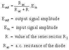From T1 to T2 the diode is reverse biased and acts as an extremely high resistance. The negative alternation of the input signal appears across the diode at approximately the same amplitude as the input. The negative alternation of the input is not limited. As with the series limiter, the parallel limiter should provide maximum output voltage for the unlimited part of the signal. The reverse-bias resistance of the diode must be very large compared to the series resistor. To determine the output amplitude, use the following formula: