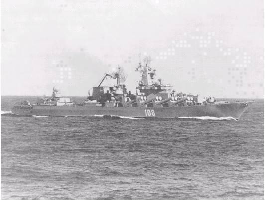 Figure 6-24. A starboard-bow view of the Soviet-guided missile cruiser Slava. |